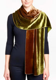 Luminous Silk/Rayon Velvet, hand dyed in an ombre of brown to green. Incredibly soft, and one of a kind.