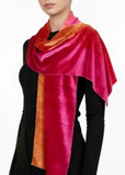Luminous Silk/Rayon Velvet, hand dyed in an ombre of hot pink to hot orange. Incredibly soft, and one of a kind.
