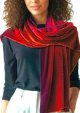 Luxurious Silk & Rayon Velvet, ombre dyed by hand in our Denver design studio, in a sophisticated ombre from burned orange, through scarlet, fuschia, and burgundy.