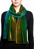 Luminous Silk/Rayon Velvet, hand dyed in an ombre of tourmaline colors.  Incredibly soft, and one of a kind.