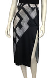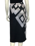 Introducing our exciting new TEXTILE PRINT Collection by Steve Sells Studio. This affordable everyday wear capsule collection showcases digitally printed fabrics inspired by our exquisite Shibori dyed, fused, stitched, and quilted Art Textiles. The highlight of the collection is the Lia Skirt, featuring a sleek pencil silhouette, below-knee length, and a daring thigh slit. Made from comfortable polyester knit, this skirt is perfect for any occasion. Size small is currently in stock, and other sizes are available to order. Embrace the artistry of our Textile Print Collection and make a stylish statement wherever you go.
