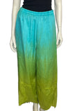 Introducing our Relaxed Fit Linen Pants, a fusion of laid-back style and artisanal craftsmanship. Crafted for comfort and versatility, these cropped-length pants feature raw edge detailing, adding a touch of effortless charm to the design. Hand-ombre dyed in a mesmerizing tourmaline colorway, the hues shift gracefully from turquoise through teal green to chartreuse, creating a captivating visual journey.