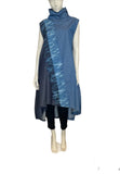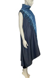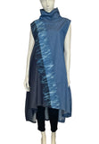 Featuring a graceful cowl neck and convenient side seam pockets, this dress combines practicality with sophistication. The standout detail is a stripe of Shibori, meticulously dyed diagonally across the front, adding an artful touch to the design. Elevate your ensemble with the perfect balance of texture and pattern, as you embrace the unique allure of our Lantern-Shaped Sleeveless Dress.