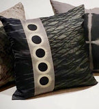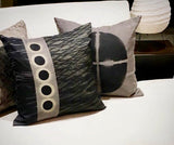 One-of-a-kind pillow, in a composition of hand dyed shibori fabrics. Shades of taupe, cream and black on layered and pieced silk organza over silk dupioni... on a down and feather pillow.
