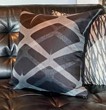 Introducing our exquisite decor piece featuring layers of Shibori dyed silk organza gracefully layered over silk dupioni. The rich hues of smoke and black create a mesmerizing and sophisticated color palette. This luxurious down and feather pillow, measuring 20" square, adds a touch of elegance to any living space. With a hidden zipper for easy dry cleaning, it combines both beauty and practicality. Elevate your home decor with this stunning Shibori-inspired pillow that effortlessly blends artistry and comfort.