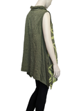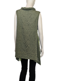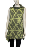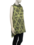 Introducing our effortlessly chic sleeveless A-line cowl neck tunic, designed to elevate your summer style. Crafted from featherweight, pebble-textured Japanese cotton, this tunic offers a luxurious and comfortable feel. The botanic shibori pattern, with an overdye in Beach-Glass colors, adds a touch of artistry and vibrancy to the design. With side slits for added movement and style, this tunic is perfect for both casual and dressier occasions.  Embrace the perfect combination of comfort and sophistication with this versatile and eye-catching tunic.