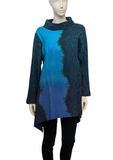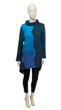 Our Long Sleeve Tunic is a versatile and chic addition to your wardrobe. This long sleeve tunic features an A-line silhouette, hip length, side slits, and a stylish cowl neck. Crafted from corded Japanese cotton, it offers a luxurious feel and excellent durability. The highlight of this garment is the dyed ombre stripe pattern, available in the color ocean. Elevate your outfit with this A-line piece, perfect for day-to-night transitions and versatile styling.