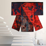This exquisitely handcrafted masterpiece makes a commanding statement in any interior setting. Painstakingly, layer upon layer of translucent shibori-dyed silk organza has been meticulously arranged to fashion this captivating composition. These layers gracefully envelop a wool batting, which is skillfully sheathed on both sides with silk crepe, ornately quilted throughout. The quilting lines, artfully inspired by the dyework in each section, are as breathtaking from the inside of the Kimono as they are from the outside. While this piece can be worn as an oversized ceremonial garment, its primary purpose is to serve as a striking wall display.
