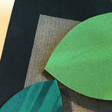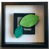 Elevate your art collection with our Hand Shibori dyed, fused, and stitched silk collage. Crafted with precision and artistic finesse, this piece showcases the delicate layers of transparent silk organza that give the impression of floating Shibori leaves above the raised central panel. Encased in a stylish 10"x10" black shadow box, this artwork exudes sophistication and depth. Whether displayed individually or arranged in a group, it adds an intriguing touch to any space. Immerse yourself in the captivating beauty of this one-of-a-kind creation today.