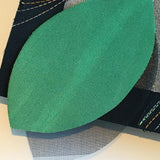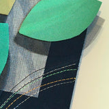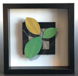 Indulge in the captivating beauty of our Hand Shibori dyed silk collage. Each delicate leaf appears to float above the raised central panel, thanks to the skillful layering of transparent silk organza. Encased in a sleek 10"x10" black shadow box frame, this artwork is a striking addition to any space. Display it as a standalone piece or create a dynamic arrangement by grouping multiple collages together. Immerse yourself in the artistry and tranquility of this remarkable creation.